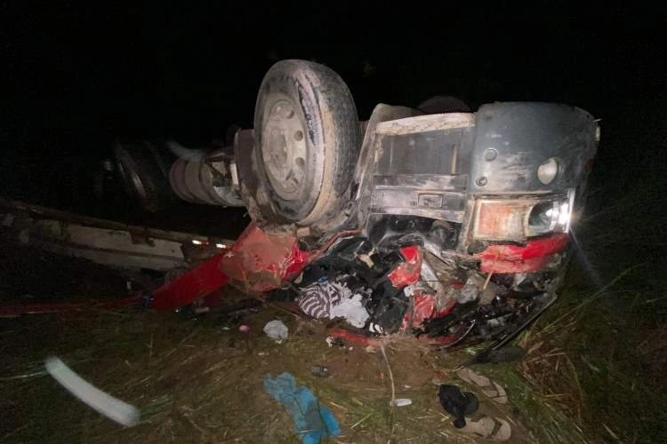 Divino: Carreta tomba em curva na BR-116 e motorista é resgatado das ferragens