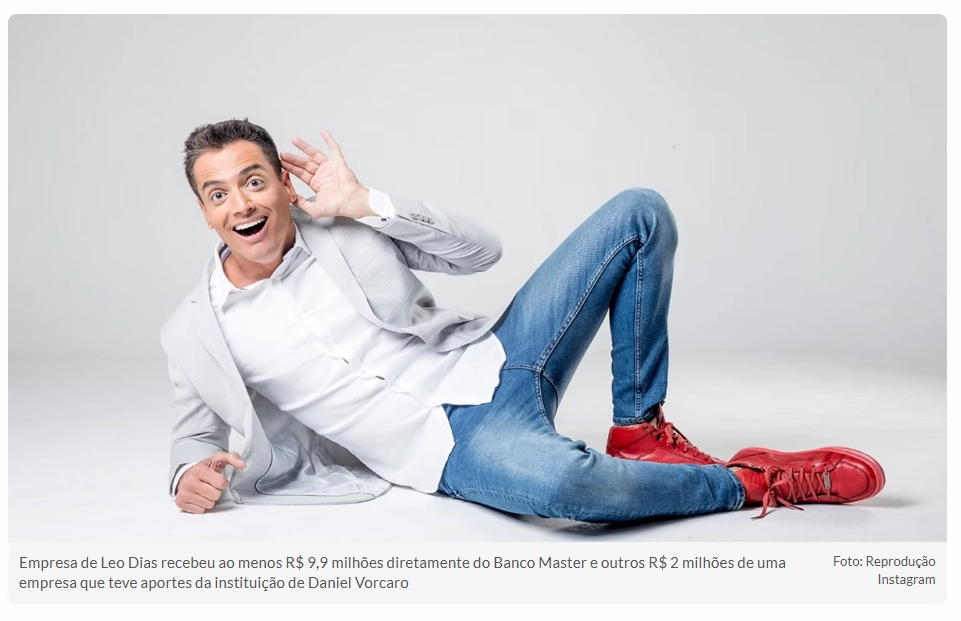 Bastidores milionários: Leo Dias recebeu quase 12 milhões e Cruzeiro mais de 570 mil do Banco Master