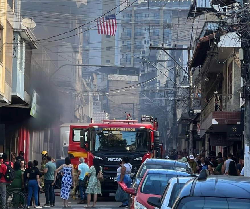 MANHUAÇU (MG) - Na tarde desta sexta-feira (05), o Corpo de Bombeiros Militar foi acionado para atendimento a uma ocorrência de incêndio em edificação comercial, na Av Salime Nacif, região central de Manhuaçu. O sinistro ocorreu em uma loja de produtos naturais, onde, segundo informações iniciais, o fogo teve origem em um curto-circuito na rede elétrica.