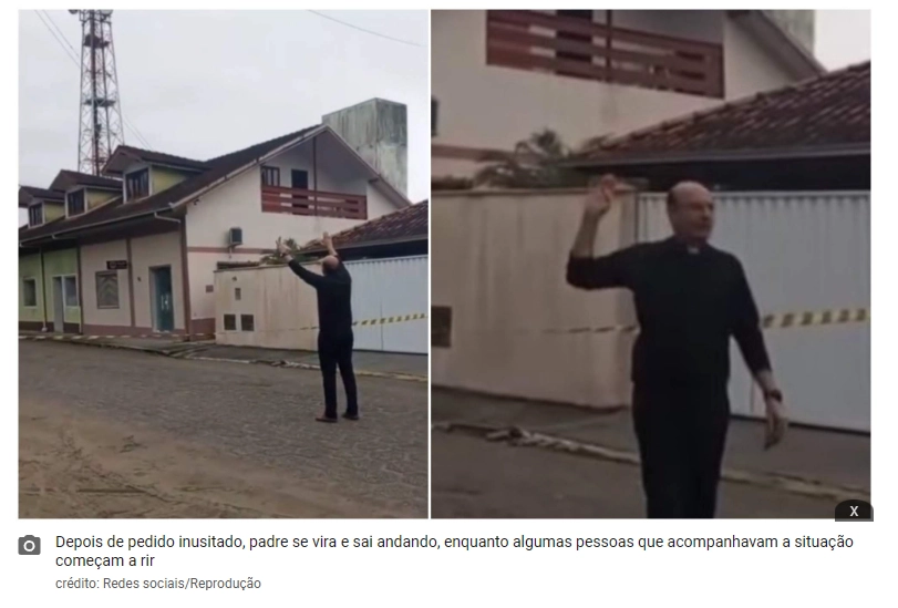 Depois da resposta inesperada, o padre se vira e sai andando, enquanto algumas pessoas que acompanhavam a situação começam a rir. Com a repercussão, Jackson Rampellotti publicou um vídeo em seu perfil no Instagram dizendo que acionou o Corpo de Bombeiros e a Secretaria de Segurança Pública, entre outros órgãos, depois de tomar conhecimento de que havia uma pessoa em situação de risco no local.