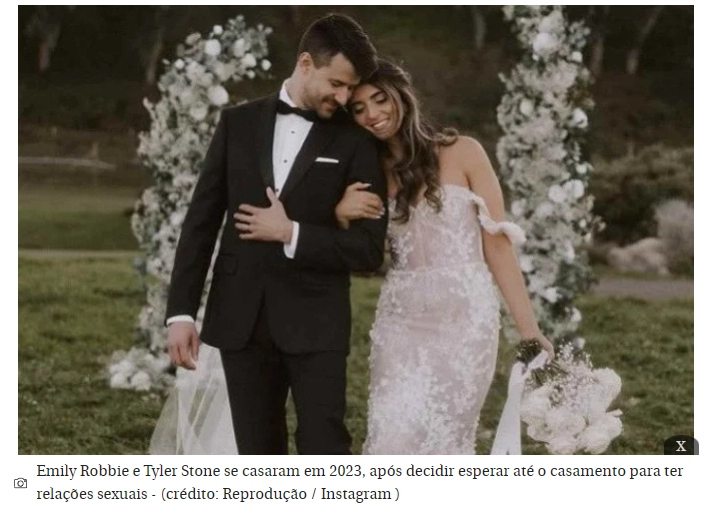 A atriz Emily Robbie, de Los Angeles (EUA), se casou em 2023 com Tyler Stone, um homem de 30 anos que revelou ser virgem por decidir se abster de sexo por vários anos. Aos 31, Emily se considerava “viciada em sexo”. Após o fim de seu primeiro relacionamento sério aos 21 anos, ela buscou prazer em relações casuais que acabaram deixando-a esgotada e emocionalmente vazia.