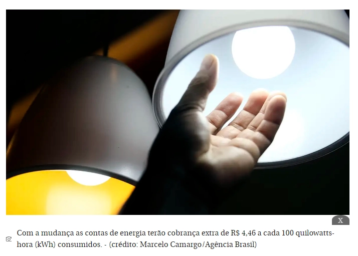Contas de energia terão cobrança extra de R$ 4,46 a cada 100 quilowatts-hora