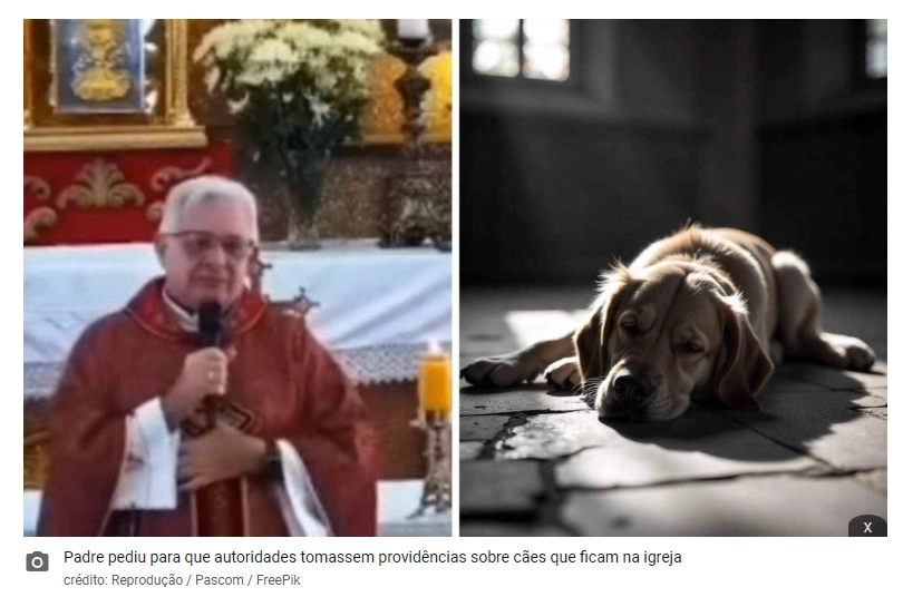 “Eu estou muito preocupado com esses cachorros dentro da matriz. Não é possível a gente continuar assim,” afirmou o padre, pedindo “encarecidamente” a intervenção de quem for responsável pelo “departamento de zoonoses, cachorro terapia, esses bichos".