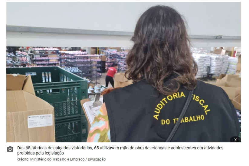 Conforme a Constituição Federal, é vedado que pessoas com menos de 16 anos, exceto na condição de aprendiz a partir dos 14 anos, trabalhem no país. Apesar disso, os auditores do trabalho encontraram nas fábricas, em Perdões e Nova Serrana, três crianças e adolescentes com idade abaixo da permitida atuando na produção dos calçados.