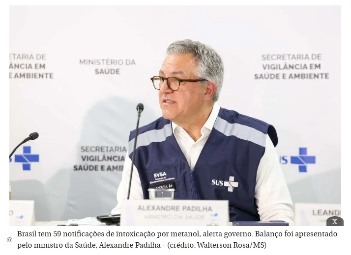 O ministro da Saúde, Alexandre Padilha, atualizou o balanço dos casos de intoxicação exógena por metanol e confirmou um total de 11 casos com detecção laboratorial no país. O número total de notificações, que abrange casos suspeitos e confirmados, chegou a 59.