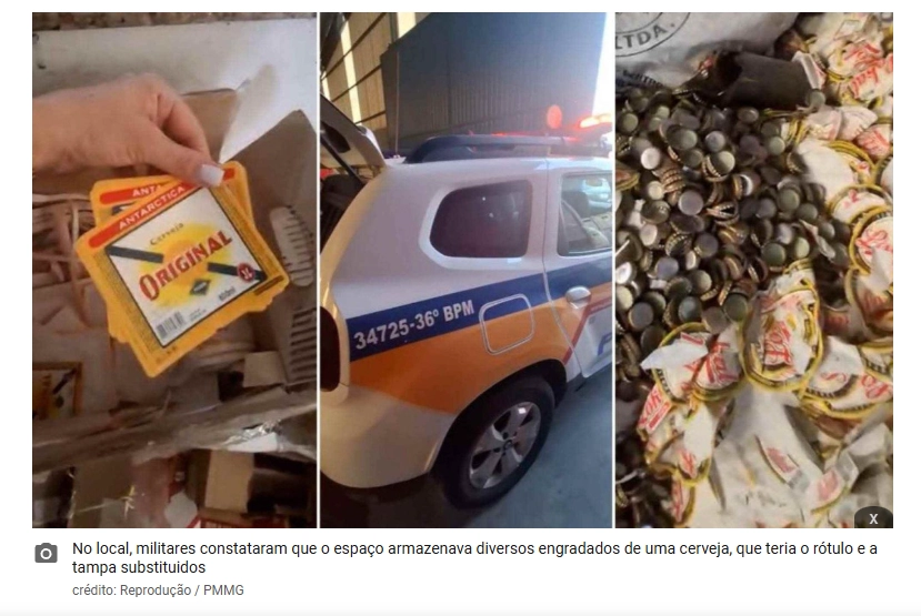 Ao chegarem ao local, os militares constataram que o espaço armazenava diversos engradados de uma cerveja de menor valor comercial que, provavelmente, tinham os rótulos substituídos por rótulos de outra marca de maior valor.