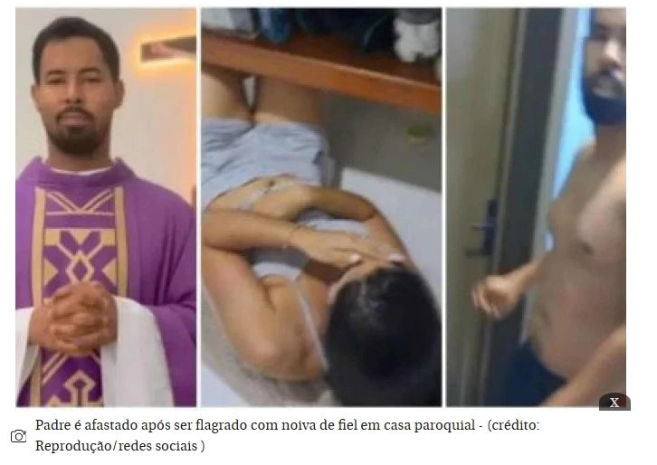 Um vídeo que circula nas redes sociais mostra o padre Luciano Braga Simplício, da Paróquia Nossa Senhora Aparecida, em Nova Maringá (MT), sendo flagrado com a noiva de um fiel dentro da casa paroquial. O caso, registrado na noite de segunda-feira (13/10), gerou polêmica na cidade de pouco mais de 5 mil habitantes e levou a Diocese da cidade a afastar o religioso de suas funções.
