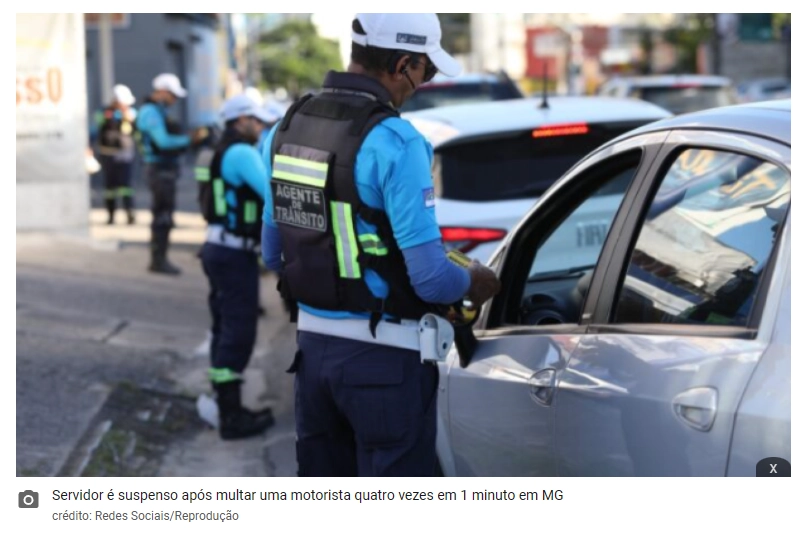 Um agente de trânsito de Uberlândia (MG), no Triângulo Mineiro, foi afastado por cinco dias depois de aplicar quatro multas a uma motorista em menos de um minuto. A decisão foi publicada no Diário Oficial do Município (DOM), na sexta-feira (14/11), e a Prefeitura concluiu que ele cometeu abuso de autoridade.