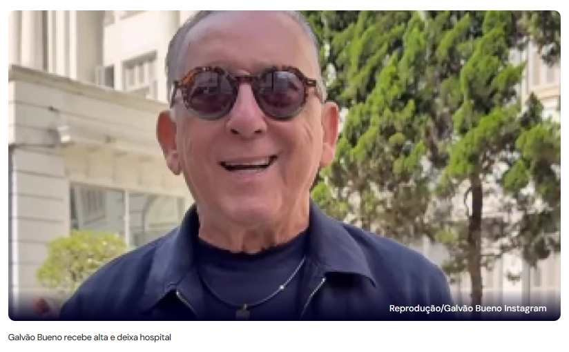 Ícone da locução esportiva, Galvão Bueno recebeu alta médica, nesta sexta-feira (21), e deixou o Hospital Sírio-Libanês, em São Paulo, após uma semana internado por conta de uma pneumonia. O narrador utilizou as redes sociais para agradecer o apoio que recebeu dos fãs e amigos no período de internação.