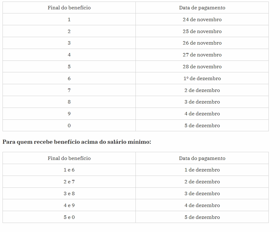 Os novos segurados vão receber a renda junto com a aposentadoria ou pensão mensal, a partir de segunda-feira (24/11). Os depósitos são feitos conforme o final do benefício, sem considerar o dígito verificador. O pagamento será realizado até 5 de dezembro.