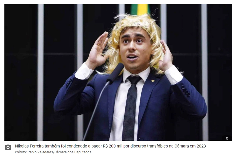 A Justiça de São Paulo condenou o deputado federal Nikolas Ferreira (PL-MG) a pagar R$ 40 mil por danos morais em episódio de 2022 no qual o parlamentar chamou de "homem" uma mulher trans.