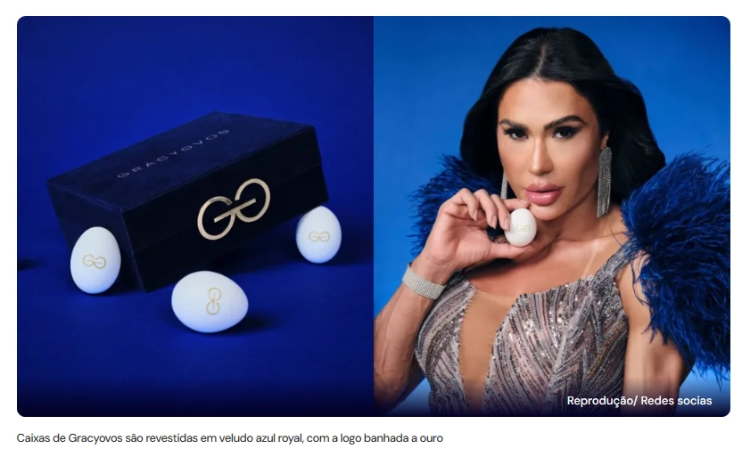 As caixas de Gracyovos são revestidas em veludo azul royal, com a logo banhada a ouro. Cada embalagem vem com seis ovos. Ela ainda não divulgou preços.