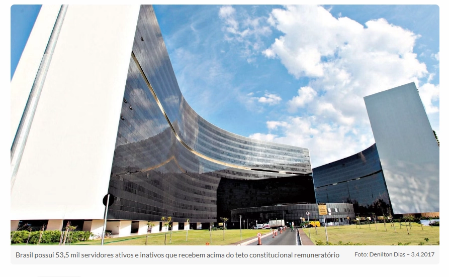 O estudo calcula que o Brasil possui 53,5 mil servidores ativos e inativos que recebem acima do teto constitucional remuneratório, de R$ 46.366,19.