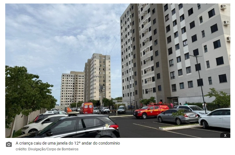 Um menino de 5 anos, identificado como Matthew Cruz Mussa, morreu depois de cair de uma janela do 12º andar de um prédio de Uberlândia (MG), no Triângulo Mineiro, na manhã desta sexta-feira (28/11).