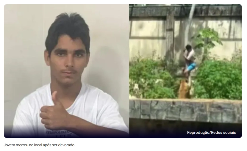 O jovem conhecido como “Vaqueirinho”, de 19 anos , foi morto neste domingo (30) após invadir jaula e ser atacado por uma leoa em zoológico de João Pessoa. Ele é conhecido pela polícia e foi preso por mais de 10 vezes, segundo o portal ClickPB.