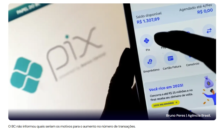 O Banco Central do Brasil (BC) informou, neste sábado (6), que o Pix bateu um novo recorde na última sexta-feira (5), com 313,3 milhões de transações financeiras em um único dia, somando R$ 179,9 bilhões.