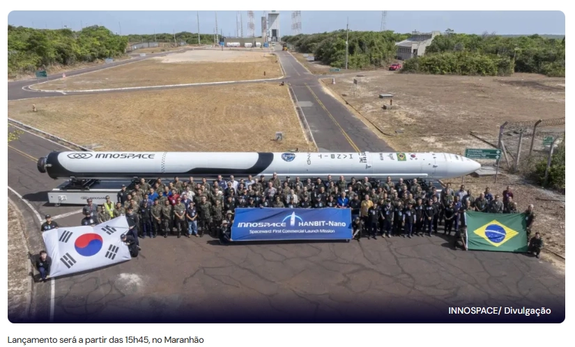 O foguete Hanbit-Nano, desenvolvido pela empresa sul-coreana Innospace, tem lançamento programado para esta quarta-feira (17), às 15h45, no horário de Brasília, a partir do Centro de Lançamento de Alcântara (CLA), no Maranhão. A operação marca o primeiro lançamento comercial de um veículo espacial realizado a partir do território brasileiro.