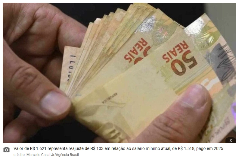 O governo federal publicou nesta quarta-feira (24/12), no Diário Oficial da União (DOU), o decreto que fixa o salário mínimo em R$ 1.621 a partir de 1º de janeiro de 2026. O valor representa um reajuste de R$ 103 em relação ao piso atual, de R$ 1.518, pago em 2025.