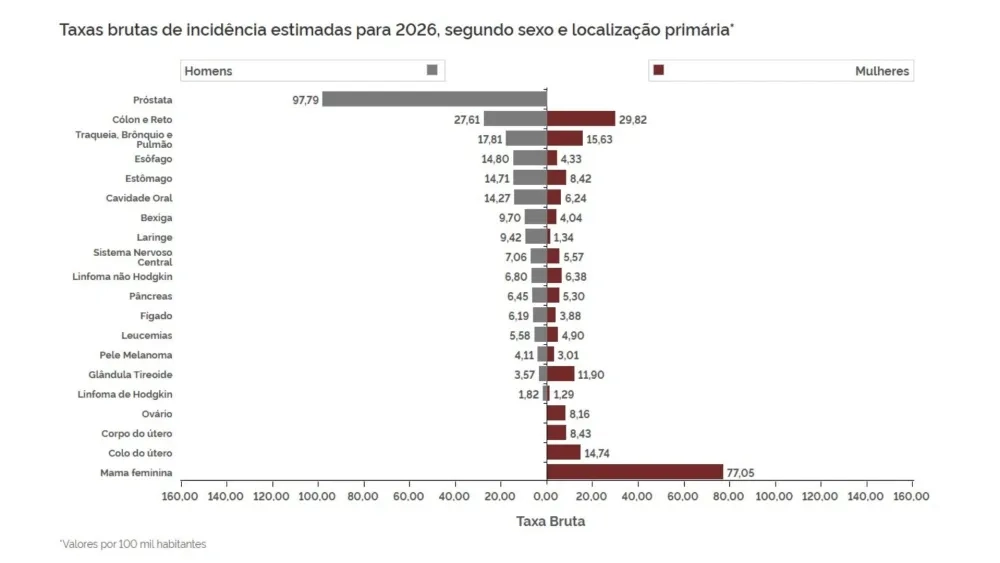 De acordo com a instituição, a projeção reflete o envelhecimento da população, desigualdades regionais e desafios persistentes no acesso à prevenção, ao diagnóstico precoce e ao tratamento oportuno.