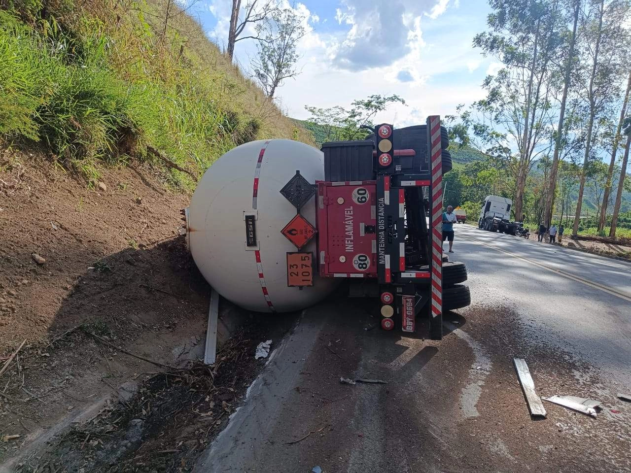 Tombamento de carreta interdita totalmente a BR-116 em Santa Bárbara ...