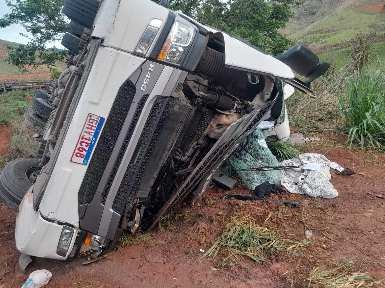 Carreteiro morre preso às ferragens após carreta tombar na BR-262