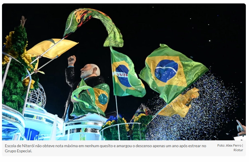 Acadêmicos de Niterói é rebaixada com enredo sobre Lula no Carnaval do RJ