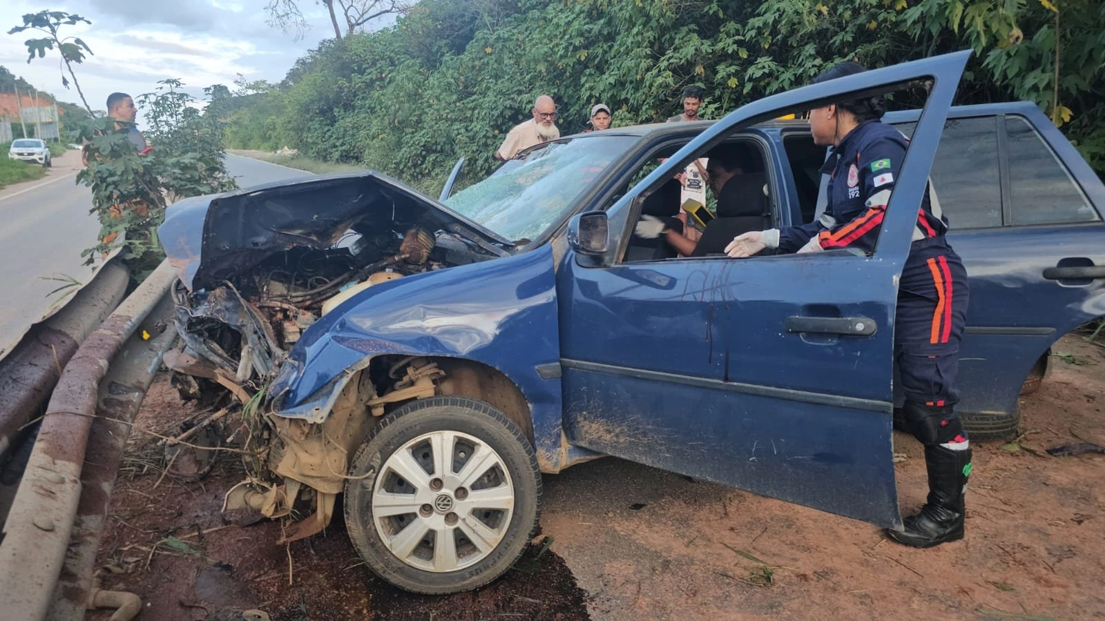 Motorista fica ferido após perder controle e bater em defensa metálica na BR-262