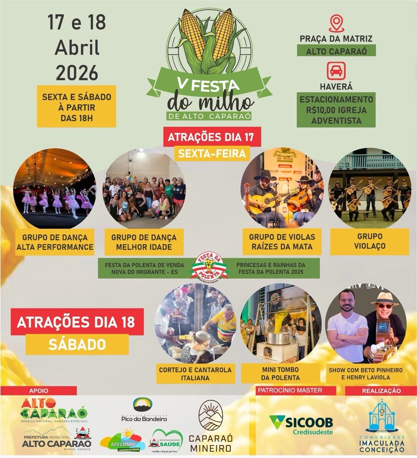 V Festa do Milho em Alto Caparaó, muita cultura, tradição, música boa nesta sexta e sábado