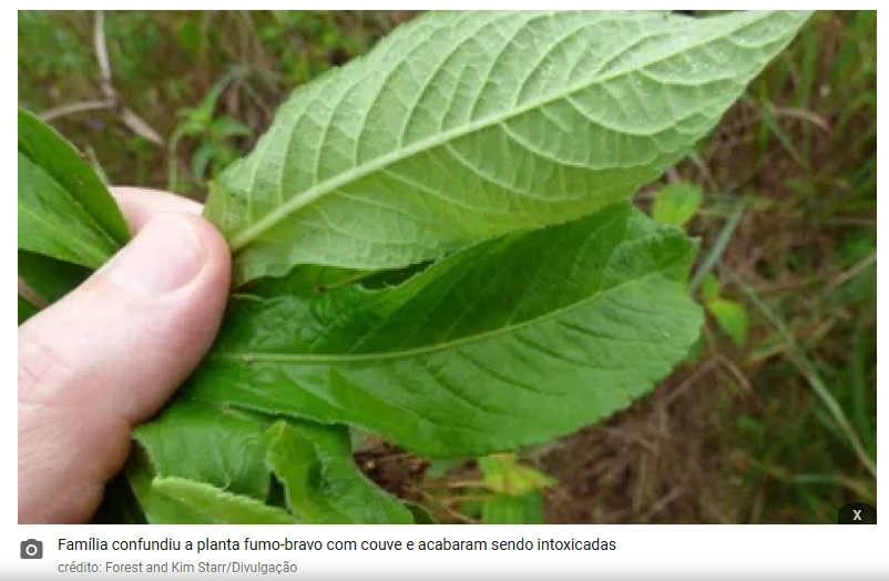 Uma mulher de 37 anos sofreu uma parada cardiorrespiratória depois após ingerir Nicotiana glauca, uma planta tóxica conhecida como "falsa couve", em Patrocínio (MG), no Alto Paranaíba. O caso aconteceu na tarde dessa quarta-feira (8/10).