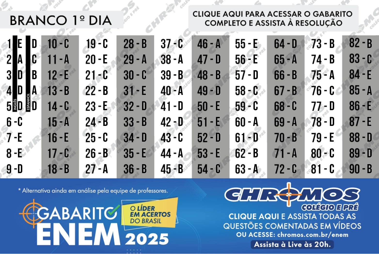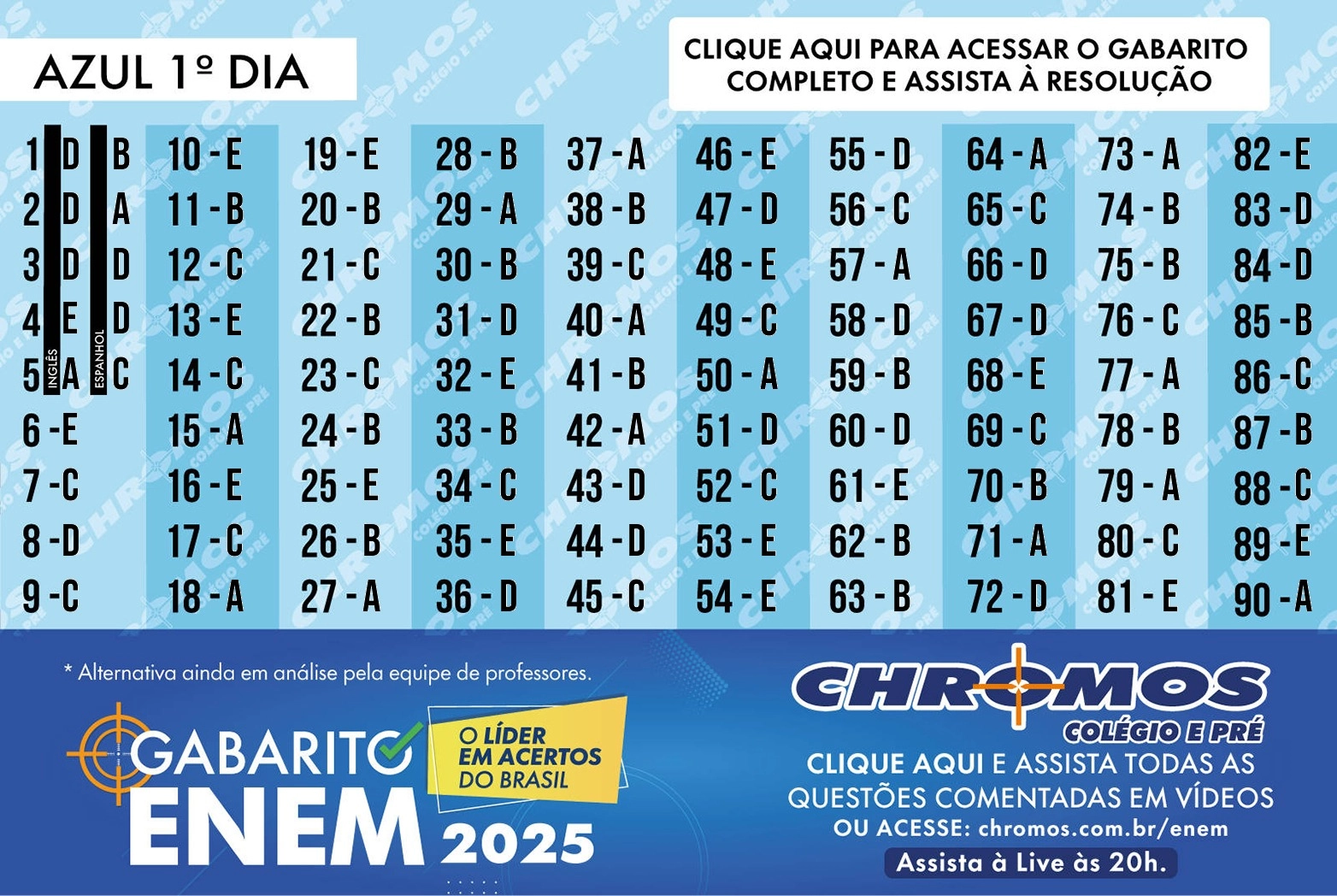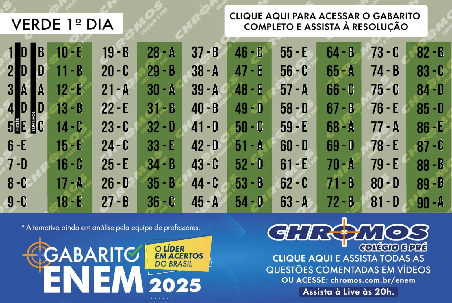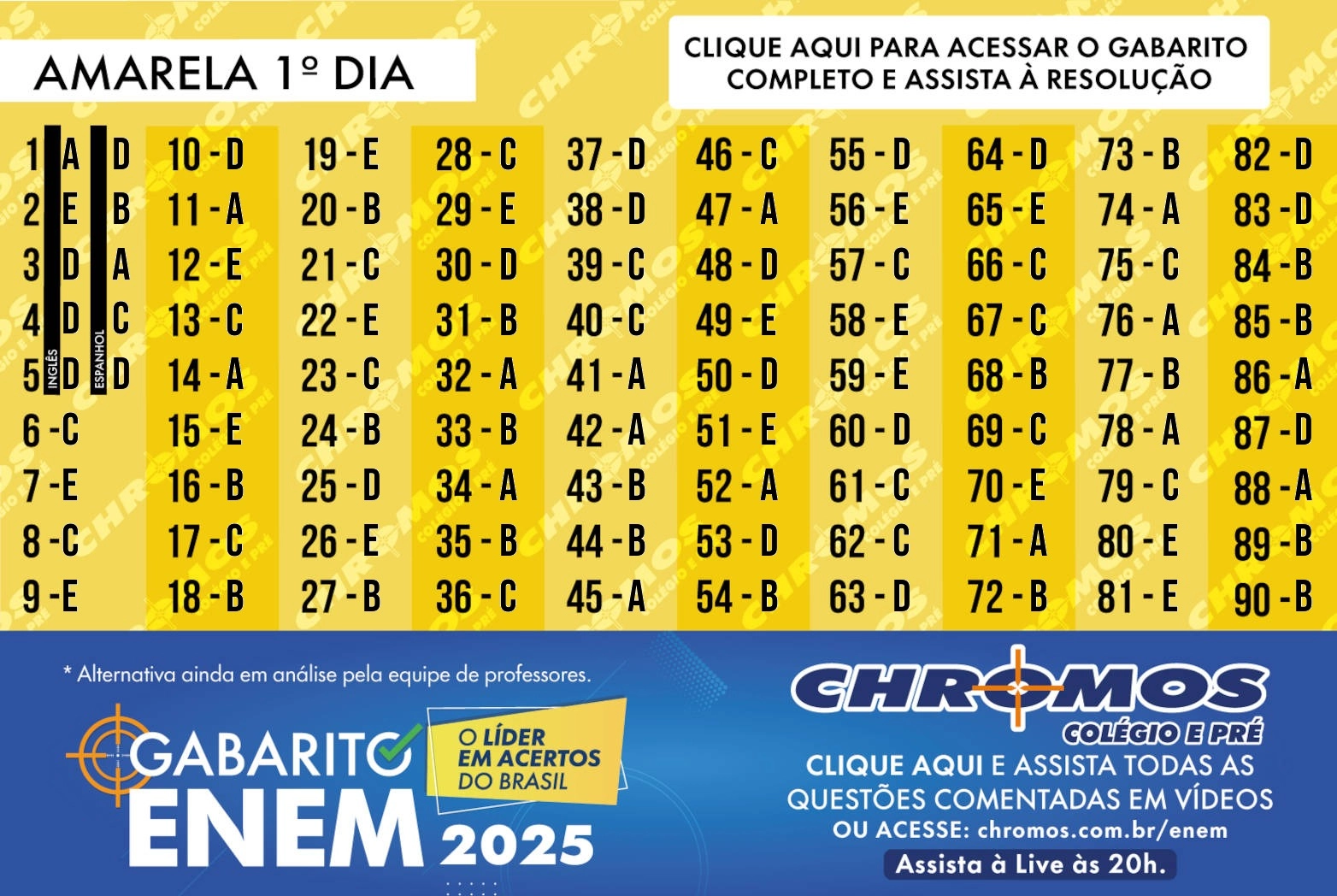 Itatiaia e Chromos divulgam gabarito extraoficial do primeiro dia de provas do Enem 2025 (Exame Nacional do Ensino Médio).