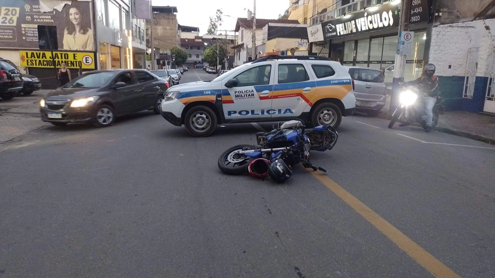 MANHUAÇU (MG) - Um acidente envolvendo uma motocicleta, e um veículo Corolla foi registrado na tarde desta segunda-feira,02, no entroncamento da Rua Luiz Cerqueira com Desembargador Alonso Starling, no centro de Manhuaçu. Segundo informações, o motociclista descia a Rua Luiz Cerqueira e, o Corolla transitava pela Rua Desembargador Alonso Sarling, sentido a Rua Alencar Soares. No entroncamento aconteceu a colisão. O motociclista foi lançado ao solo e, a moto projetada a alguns metros à frente. Com o impacto, o airbag do carro foi acionado. O piloto sofreu ferimentos, e foi levado consciente para o serviço de Urgência e Emergência pela equipe do SAMU.